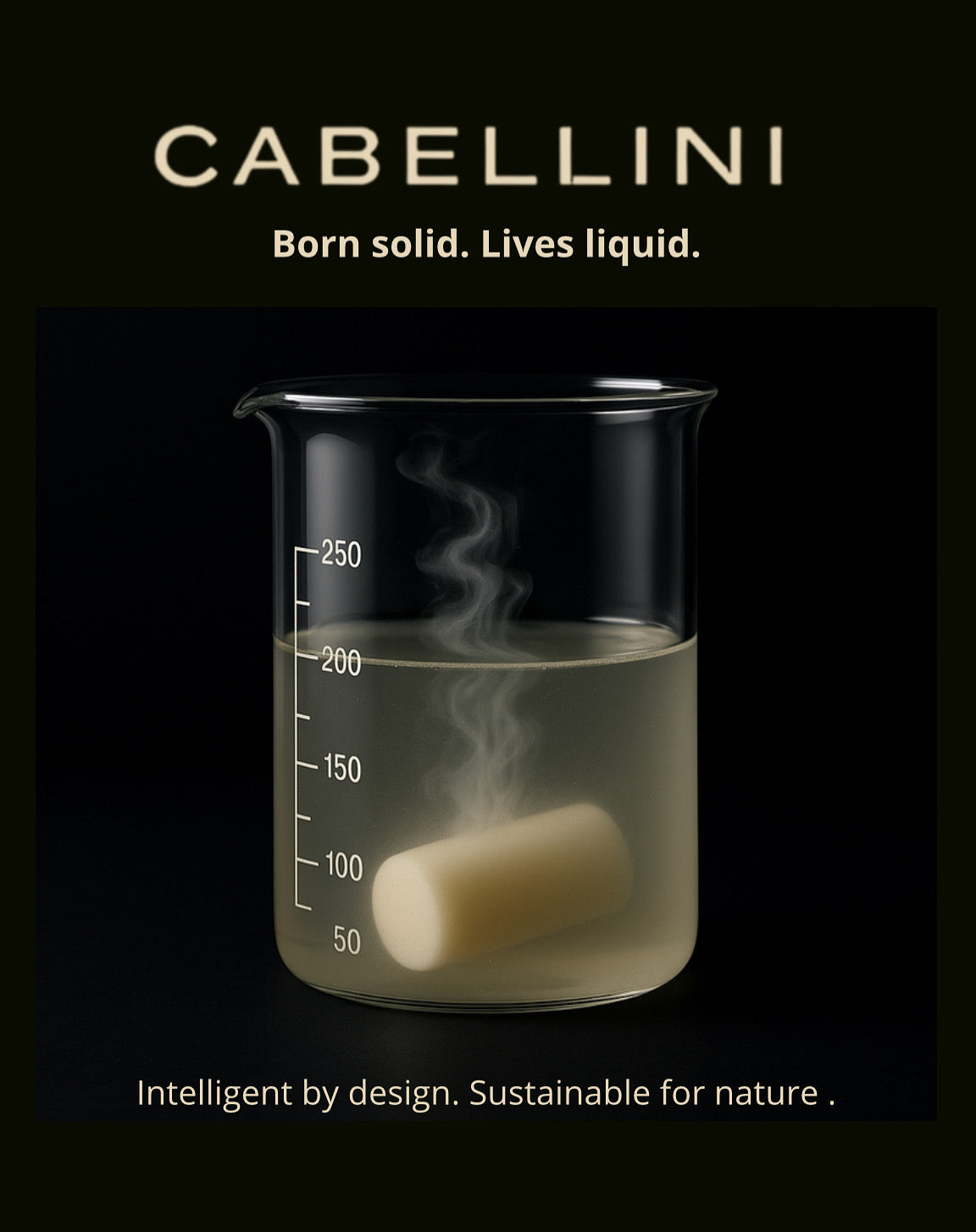 El sólido hay que frotarlo directo en el cabello. CABELLINI es la evolución: disuelves una vez y usas lĆquido siempre. Sin fricción. Sin incomodidad.